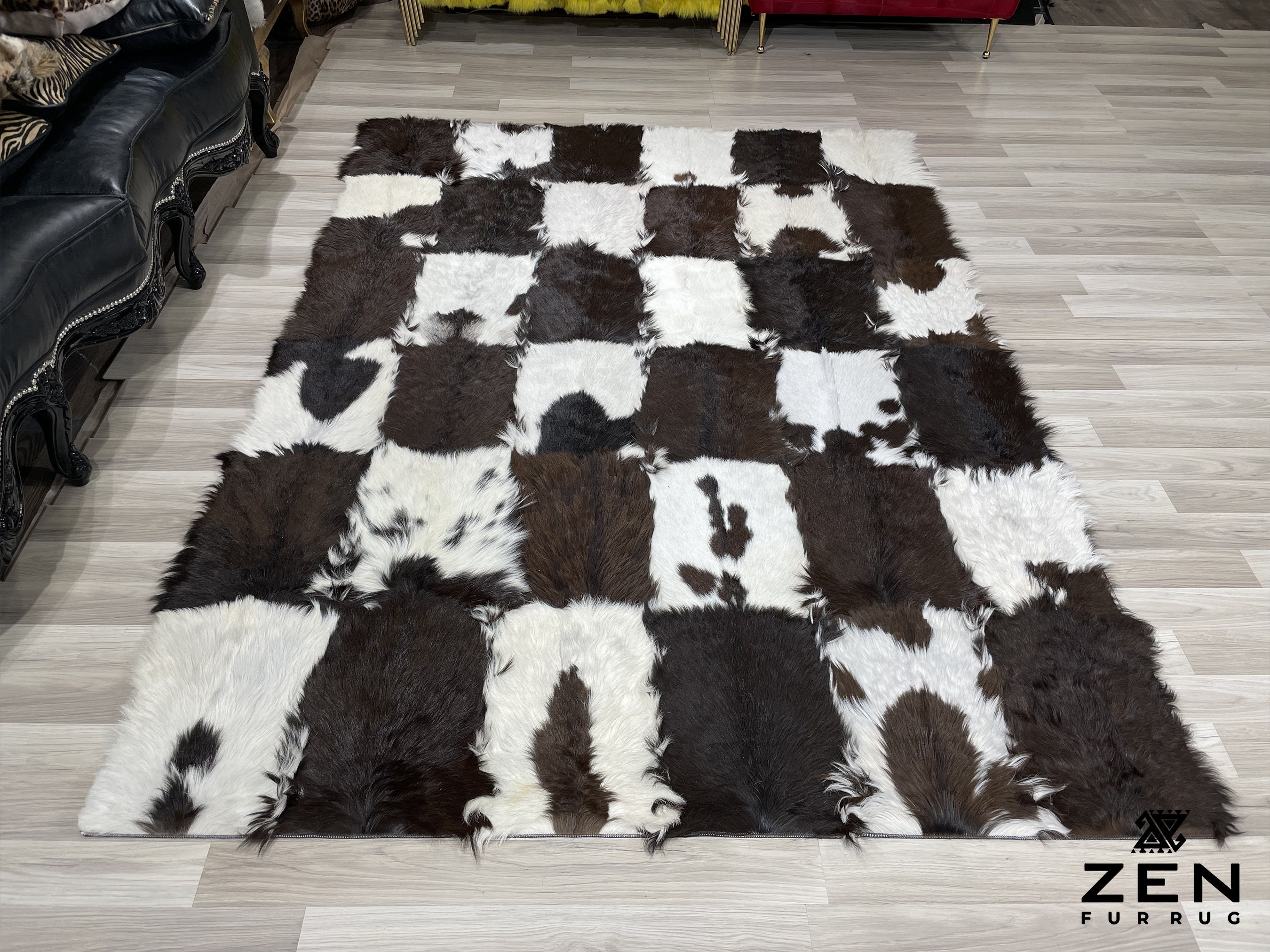 Patchwork Goat Rug Natural Goat Leather Fur Rug Brown White Etsy Uk