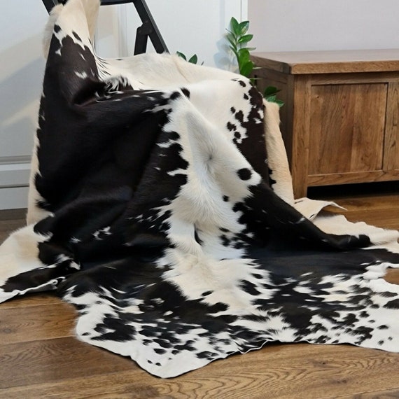 Cow Hide Rug Black And White Leather Rug Real Leather Hair Of Etsy Uk